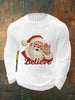 Men's Christmas Believe Santa Claus Print Casual Waffle Long Sleeve Top