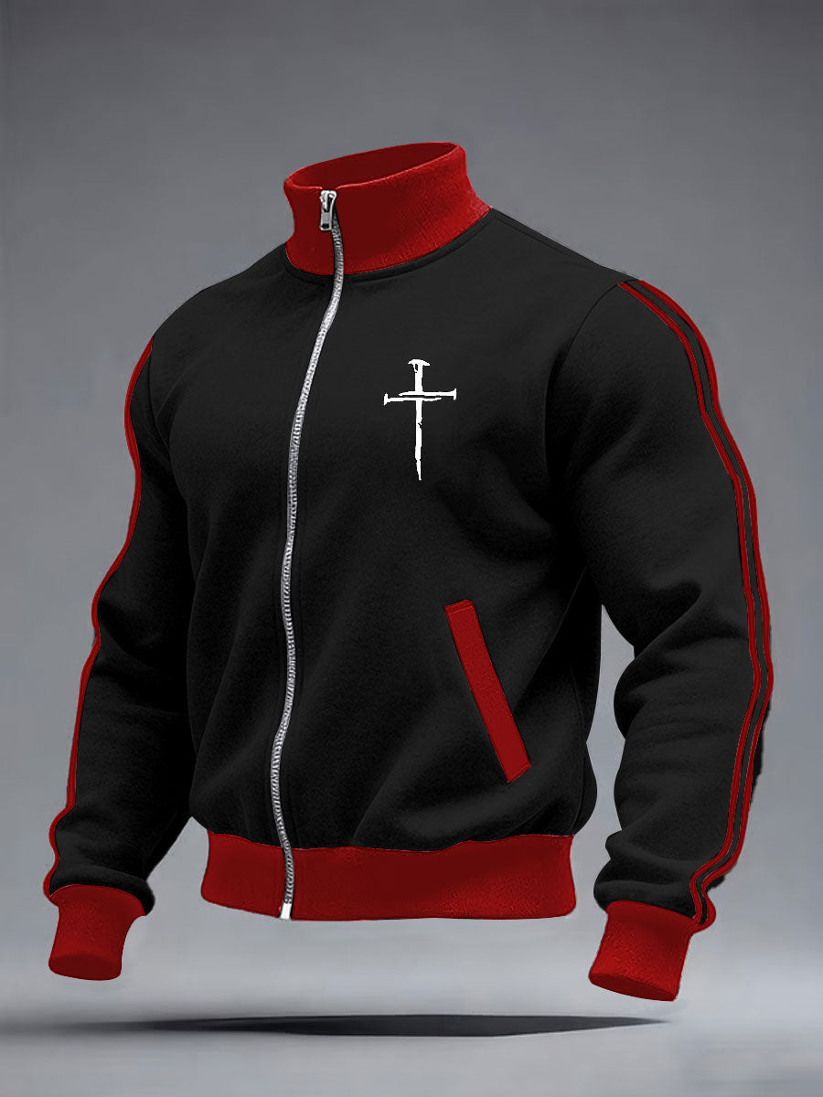 Men's Jesus The Way The Truth The Life John 14:6 Christian Cross Print Zipper Stand Collar Sweater
