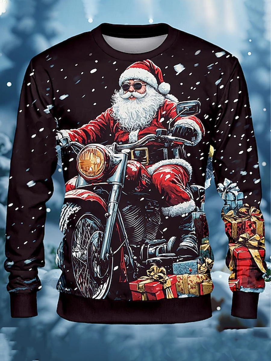 Men's Santa Claus riding a motorcycle Crew Neck Sweatshirt