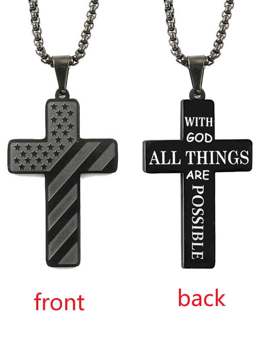 Unisex American Flag Cross WIth God All Things Are Possible Stainless Steel Necklace
