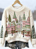 Women's Christmas Inspired House Building Embroidered Furry Sweatshirt