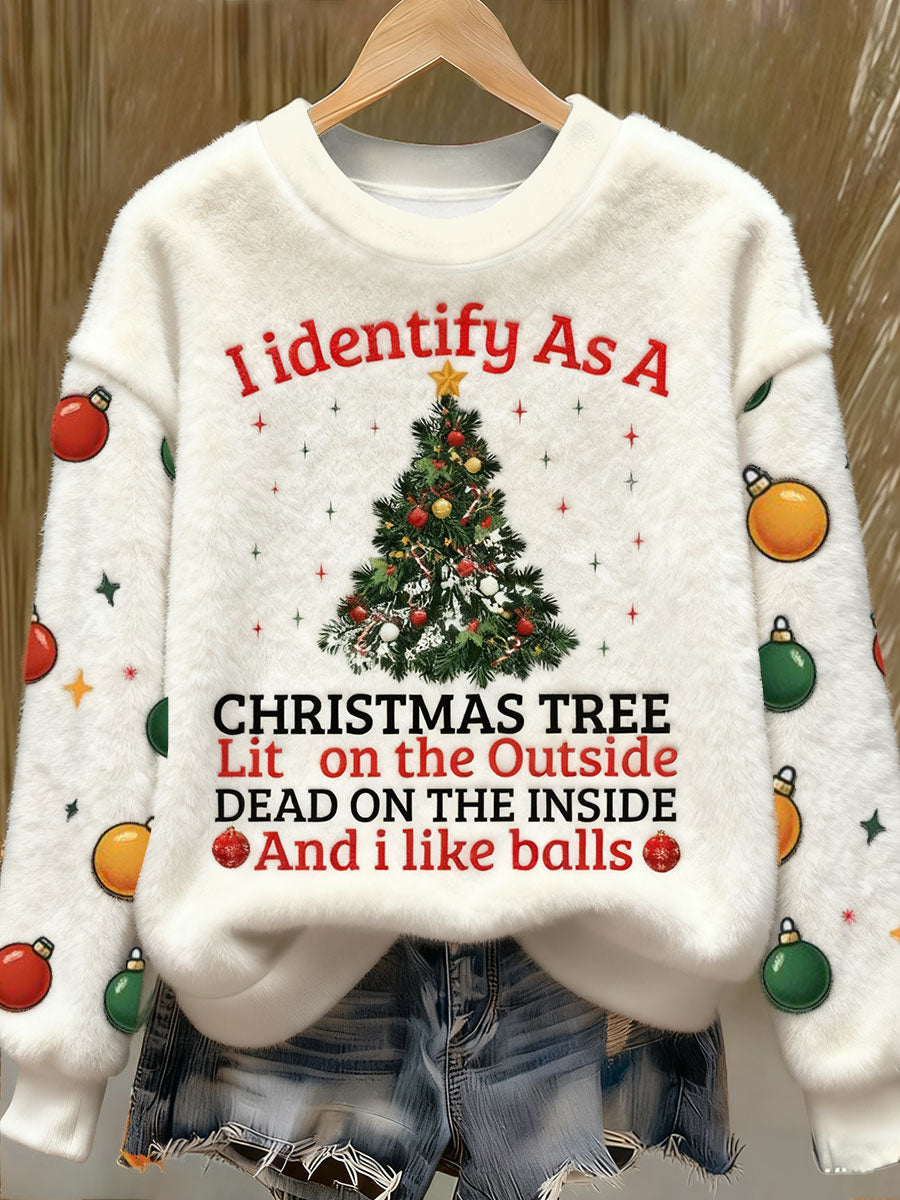Women's Funny Identify As A Christmas Tree Printed Flannel Sweatshirt